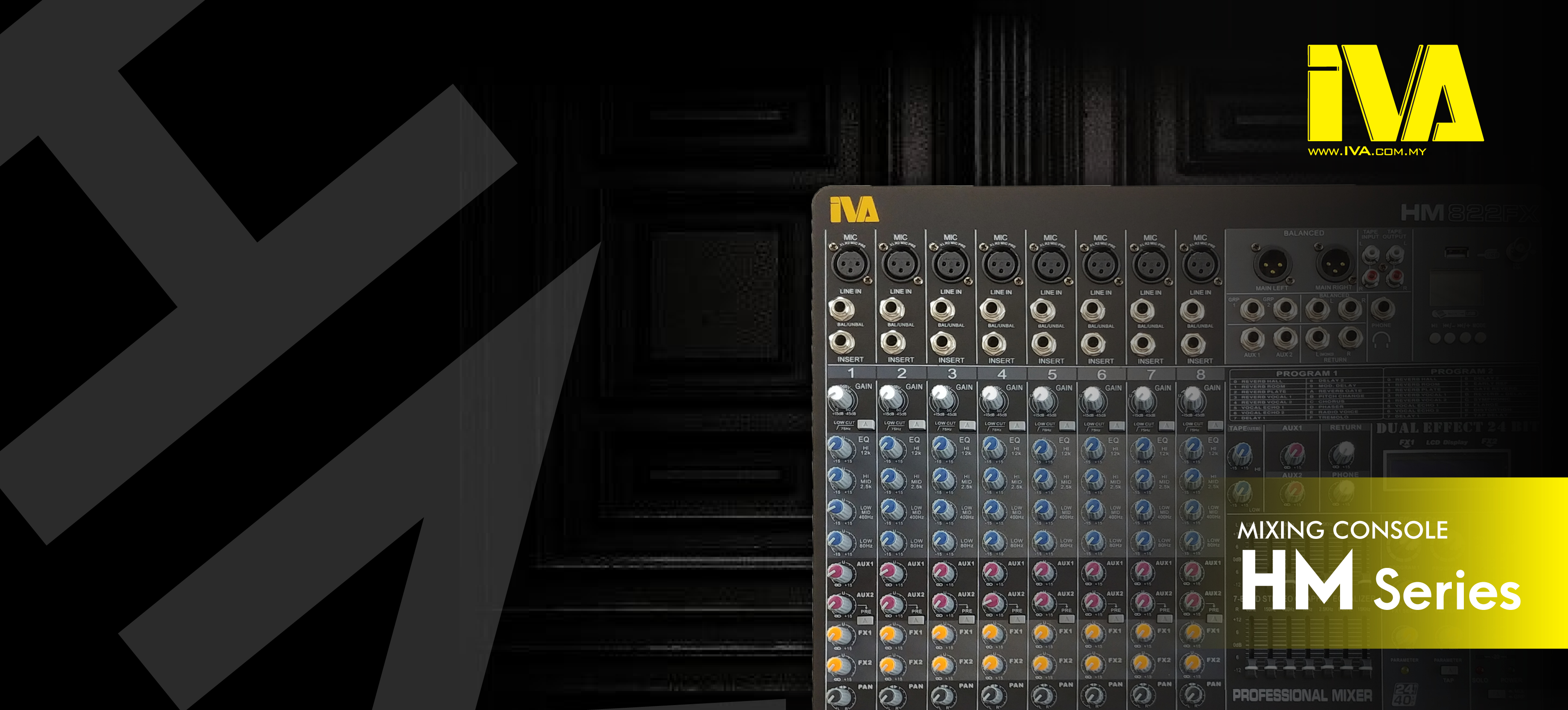 IVA large format mixer, HM2422FX accumulated years of experience of an audio mixing console that people who wanted to use. This IVA large mixer come with features packed that work like a charm to every on board audio engineer. This professional mixer come with in-built dual effect and 2 aux busses which are useful for larger scale audio deployment and making live mixing a much more easier job to handle.
